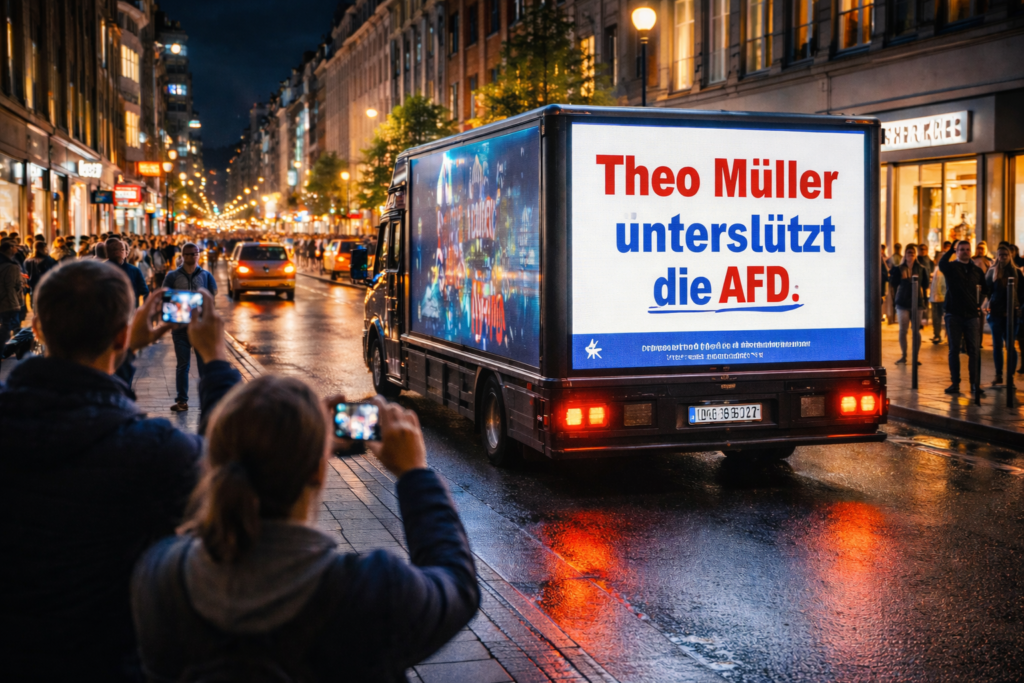 Da das leider bisher nicht absehbar ist, nehmen wir die Entscheidung des Gerichts zum Anlass, unsere Aufklärungskampagne über Müllers AfD-Nähe nun noch einmal deutlich zu verstärken. Mit LED-Trucks und Plakaten bringen wir die entsprechenden Informationen in Städte und Regionen überall in der Republik.