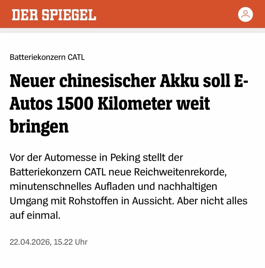 Der im Spiegel-Artikel beschriebene Fortschritt des Batterieherstellers CATL zeigt eindrucksvoll, wie schnell sich die Elektromobilität entwickelt. Eine neue Batteriegeneration soll unter idealen Bedingungen Reichweiten von bis zu 1.500 Kilometern ermöglichen.