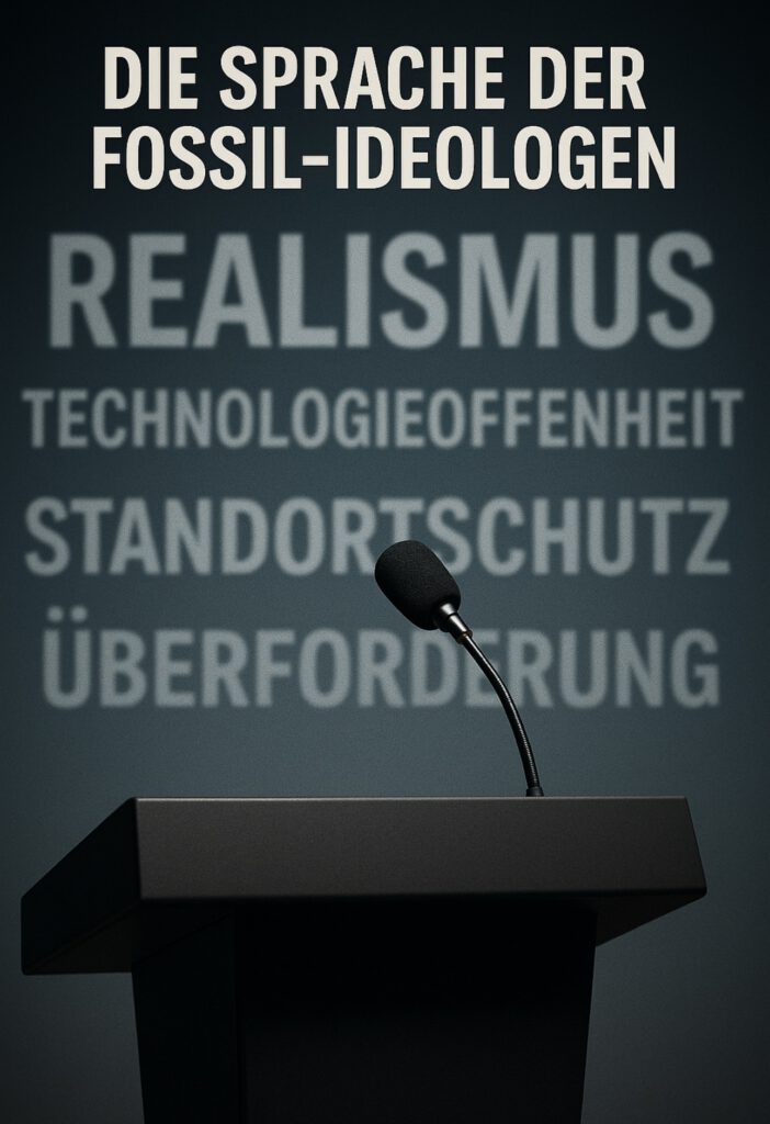 Die Sprache der Fossil-Ideologen ist mehr als Rhetorik – sie ist ein strategisches Werkzeug. Mit ihr werden Ängste geschürt, Debatten verschoben und Reformen ausgebremst. Wer die Begriffe versteht, erkennt sofort: Hinter freundlichen Worten steckt die Agenda der fossilen Lobby.