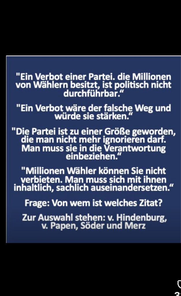 Zitat 1 – Hindenburgs Präsidialkanzlei; 1930, Bundesarchiv: R 43 I Zitat 2 – Markus Söder; Instagram-Post vom 22.11.2025 Zitat 3 – Franz von Papen; Regierungserklärung vom 21.06.1932 Zitat 4 – Friedrich Merz; ARD-Brennpunkt vom 07.05.2025