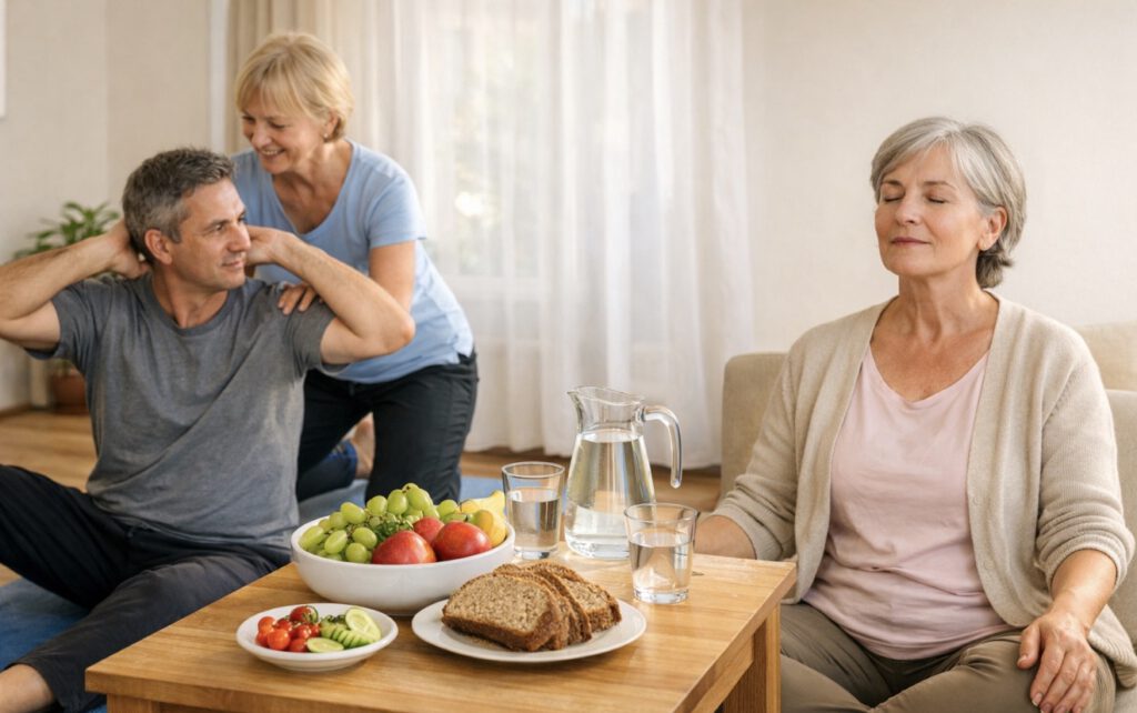 Im Mittelpunkt stehen drei Bereiche: Bewegung, Ernährung und Stressbewältigung.