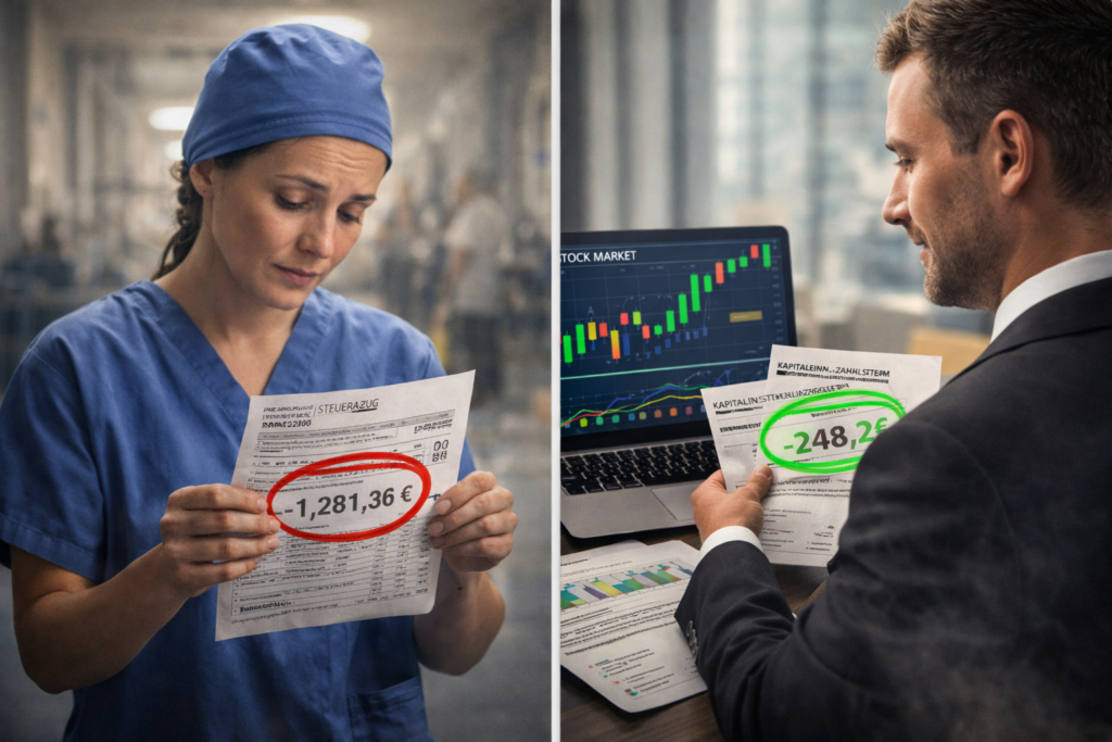 Die Kapitalertragsteuer beträgt pauschal 25 % zuzüglich Solidaritätszuschlag. Wer ausschließlich von Kapital lebt – etwa durch Zinsen, Dividenden oder Kursgewinne – zahlt damit deutlich weniger Steuern als eine Facharbeiterin oder ein Angestellter mit mittlerem Einkommen. Wer Millionär ist und nur Kapitalerträge erzielt, bleibt regelmäßig bei dieser niedrigen Belastung. Und selbst diese 25 % werden durch Holding-Strukturen, Verlustverrechnung, Stiftungen oder Auslandsmodelle oft auf 0 % reduziert.