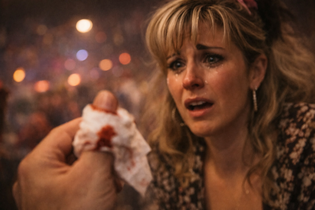 Dann der Schnitt. Ein kurzer Schmerz. Und sofort: Blut. Viel Blut. So viel, dass es aussah, als hätte man mir den halben Finger, ja fast den halben Daumen abgetrennt. Die Musik lief weiter, aber für mich war alles wie eingefroren. Die Frau hinter mir wurde kreidebleich, starrte auf meine Hand – und begann zu weinen. Sie war völlig geschockt, weil aus einem Spaß plötzlich bitterer Ernst geworden war.