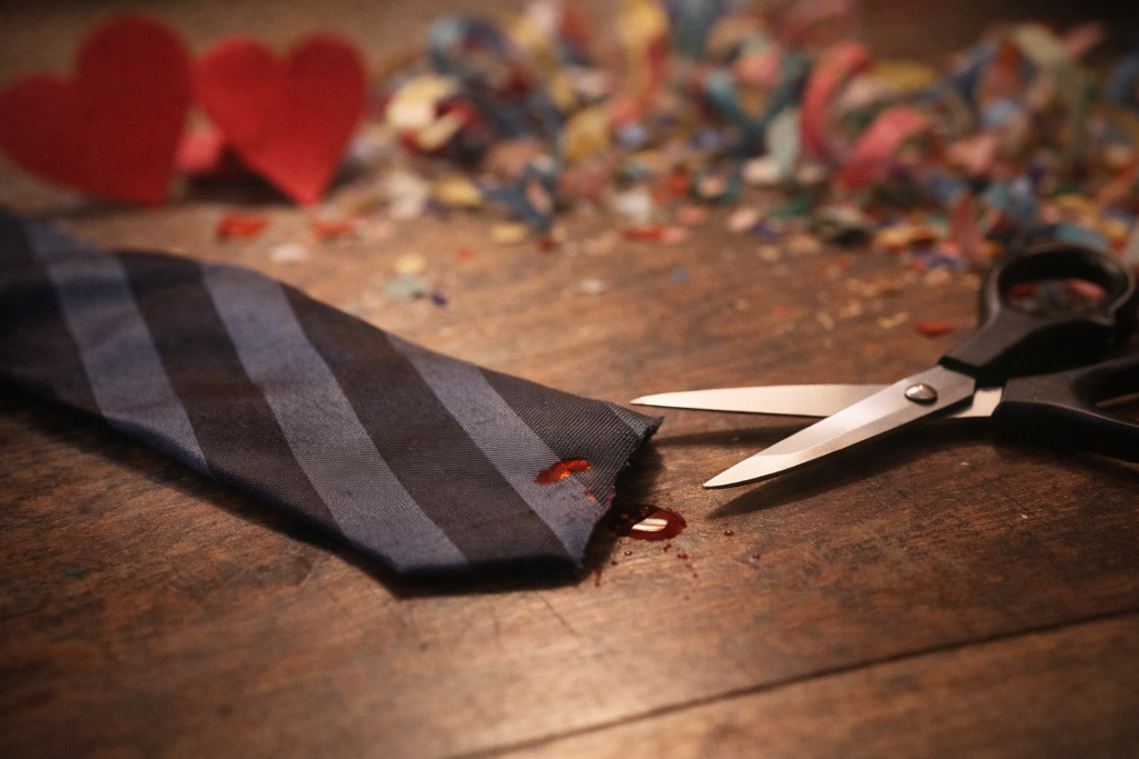 Im selben Moment fuhr ich reflexartig mit der linken Hand an meine Krawatte – genau in dem Augenblick, als hinter mir jemand mit einer Schere ansetzte, sie abzuschneiden. Ein typischer Altweiber-Brauch. Nur: Ich hatte nicht damit gerechnet. Überhaupt nicht.