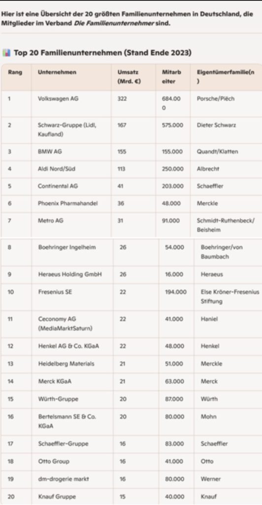 Hier eine Übersicht der größten 20 Mitglieder von DieFamilienunternehmer