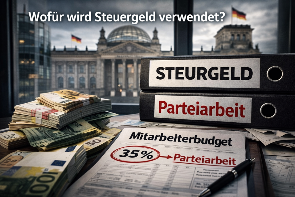 Der zentrale Vorwurf: Bundestagsabgeordnete sollen 35 Prozent ihres Mitarbeiterbudgets – also Steuergeld, das für parlamentarische Arbeit vorgesehen ist – für Parteiinteressen abführen.