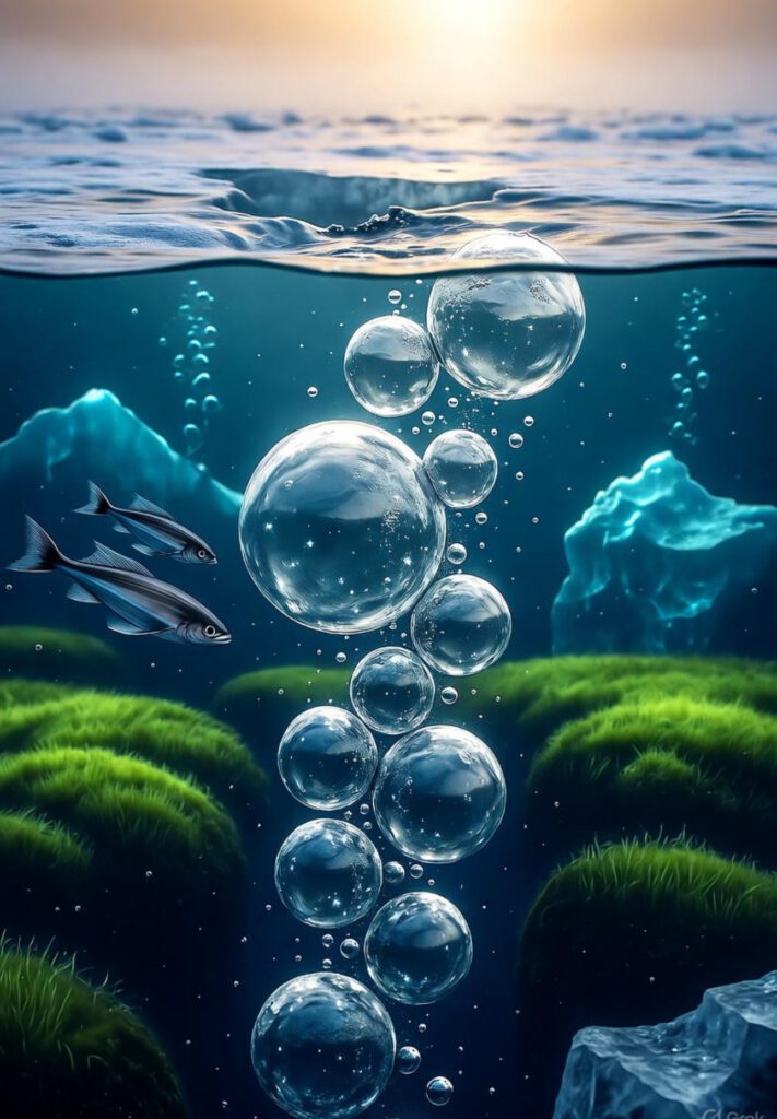 Aus dem antarktischen Meeresboden treten Methanblasen aus, die über Jahrtausende in gefrorenen Sedimentschichten eingeschlossen waren.