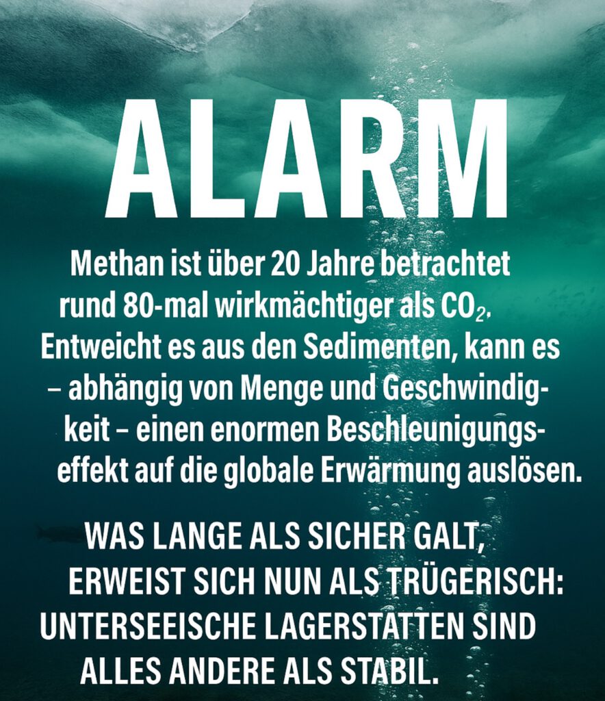 Methan ist über 20 Jahre betrachtet rund 80-mal wirkmächtiger als CO₂. Entweicht es aus den Sedimenten, kann es – abhängig von Menge und Geschwindigkeit – einen enormen Beschleunigungseffekt auf die globale Erwärmung auslösen. Was lange als sicher galt, erweist sich nun als trügerisch: Unterseeische Lagerstätten sind alles andere als stabil.