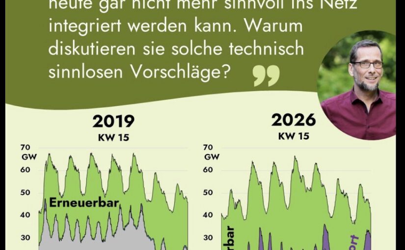 Anstatt uns möglichst schnell mit erneuerbaren Energien unabhängig von Energieimporten zu machen, setzen CDU/CSU weiter auf fossile Energien für Erdgaskraftwerke und Verbrennerautos und machen immer wieder Vorstöße zur Reaktivierung der Kernenergie. Allein aus technischer Sicht lassen sich Kernkraftwerke in den bestehenden deutschen Energiemix mit viel Sonne und Wind nicht mehr sinnvoll integrieren. Gibt es niemanden, der den Verantwortlichen simple technische Zusammenhänge erklären kann?