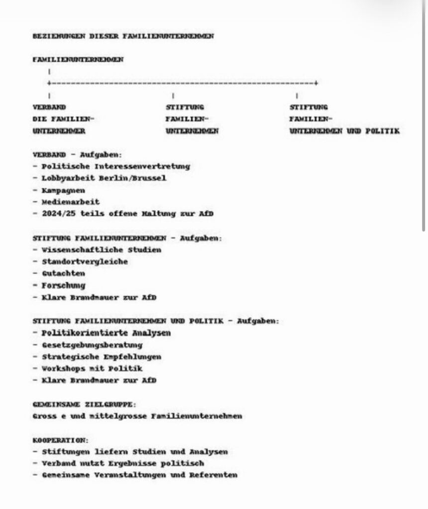 Der Verband wurde 1950 gegründet, die beiden Stiftungen folgten 2002 und Mitte der 2010er-Jahre. Gemeinsam bilden sie ein einflussreiches Netzwerk, das aus wissenschaftlicher Legitimierung, strategisch-politischer Analyse und direkter Lobbyarbeit besteht. Während die Stiftungen eine klare Brandmauer zur AfD bewahren, hat der Verband seine Distanz in Teilen aufgegeben. Trotz formaler Unabhängigkeit greifen die drei Organisationen funktional ineinander und prägen zentrale wirtschaftspolitische Debatten in Deutschland.