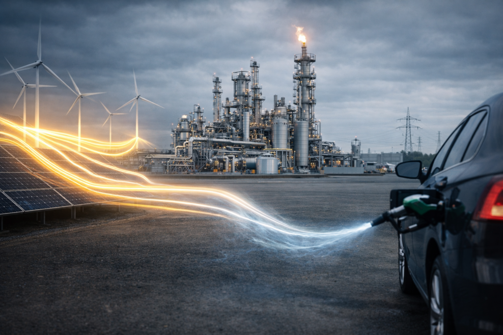E-Fuels werden politisch gern als technologische Wunderwaffe dargestellt. Sie entstehen aus Wasserstoff und CO₂ unter Einsatz großer Mengen erneuerbaren Stroms. Genau hier liegt das Problem: