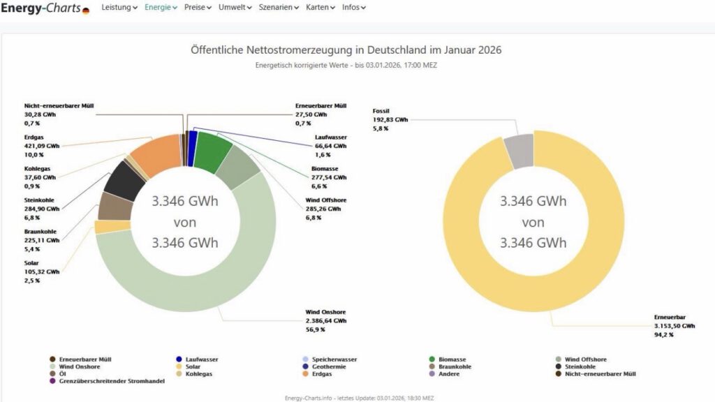 Der in Deutschland verbrauchte Strom wird rechnerisch zu 95% aus EE erzeugt und das bereits seit Monatsbeginn.