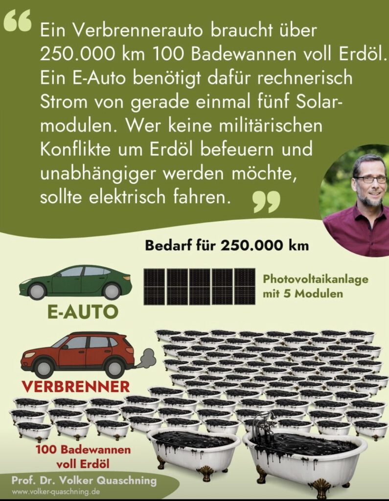 E-Autos in Kombination mit erneuerbaren Energien bieten dagegen echte Souveränität. Strom aus Sonne und Wind kennt keine OPEC, keine Blockaden, keine Tankerkrisen. Er macht uns unabhängiger, sicherer und langfristig günstiger. Jeder weitere Verbrenner verlängert dagegen eine Abhängigkeit, die wir uns politisch und wirtschaftlich längst nicht mehr leisten können.