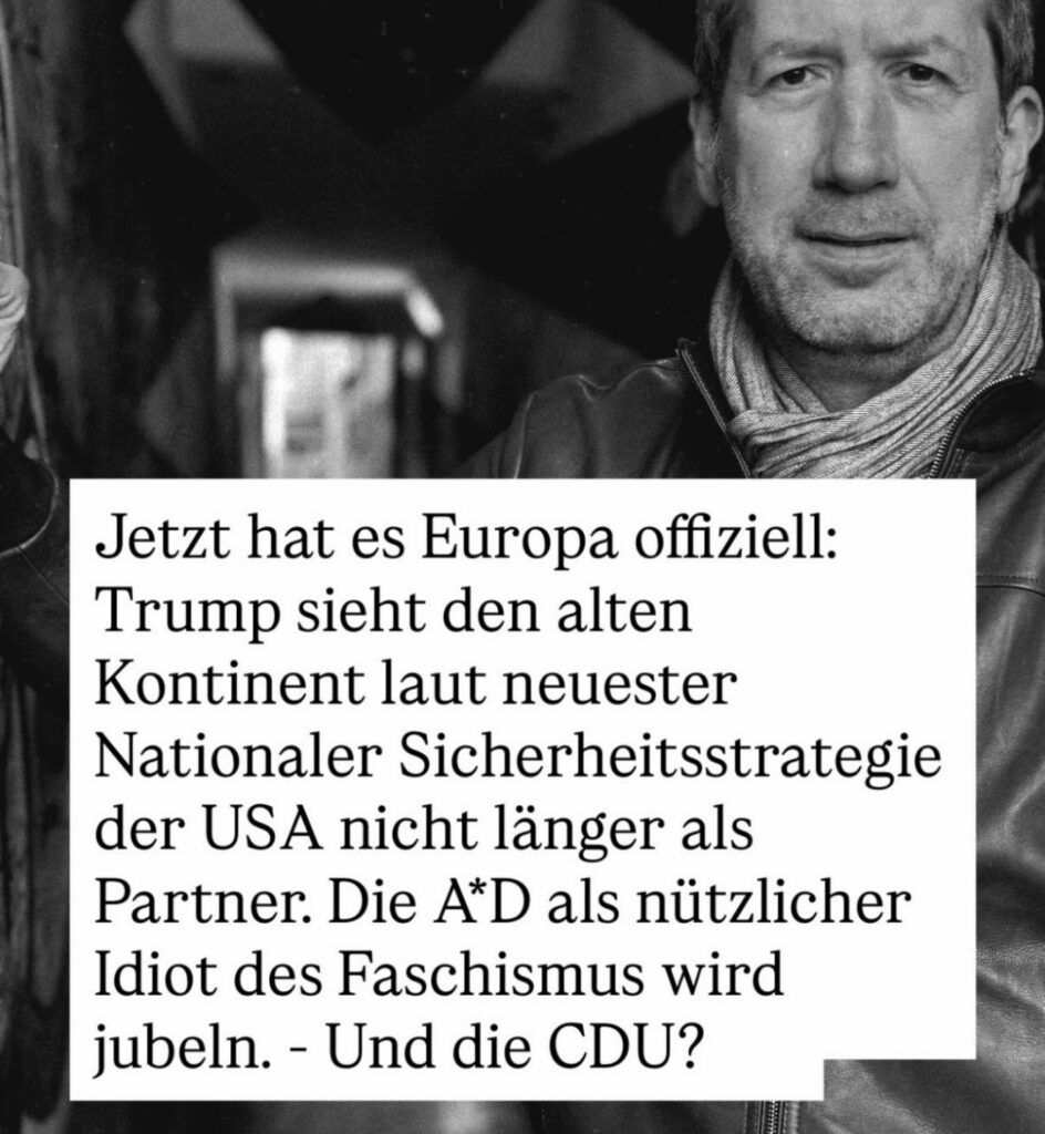 Es ist ein Scheidungspapier – und jetzt haben wir es schwarz auf weiß. Mit der neuen Nationalen Sicherheitsstrategie der Vereinigten Staaten hat Donald Trump offiziell erklärt, dass Europa künftig nicht mehr Partner, sondern ein Risiko für die USA sei – eine bloße Projektionsfläche amerikanischer Machtinteressen. Damit greift Trump alles an, was Europa im Kern ausmacht: Freiheit, Solidarität und die Überzeugung, dass wir gemeinsam stärker sind als allein. Und wir erinnern uns: Genau dieser Trump ist derjenige, über den CDU-Politiker wie Merz und Spahn bis heute kaum ein kritisches Wort verlieren.