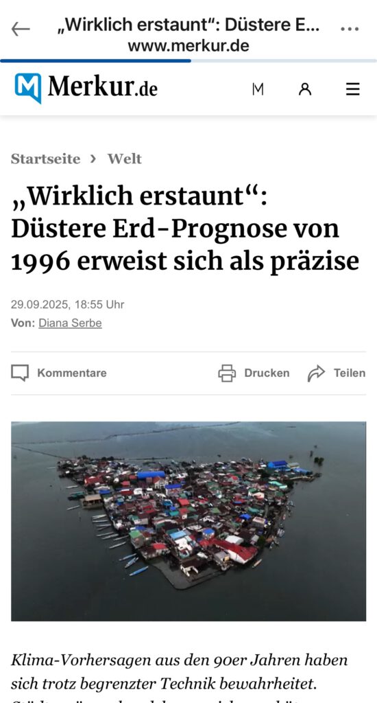 Der Merkur berichtet, dass eine düstere Erd-Prognose aus dem Jahr 1996 erstaunlich genau eingetroffen ist.