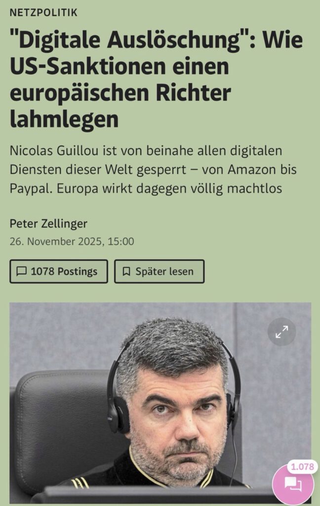 Der Fall des französischen IStGH-Richters Nicolas Guillou zeigt das in aller Deutlichkeit. Im Zuge von US-Sanktionen gegen den Internationalen Strafgerichtshof (IStGH) wurde Guillou von zentralen digitalen Diensten abgeschnitten.