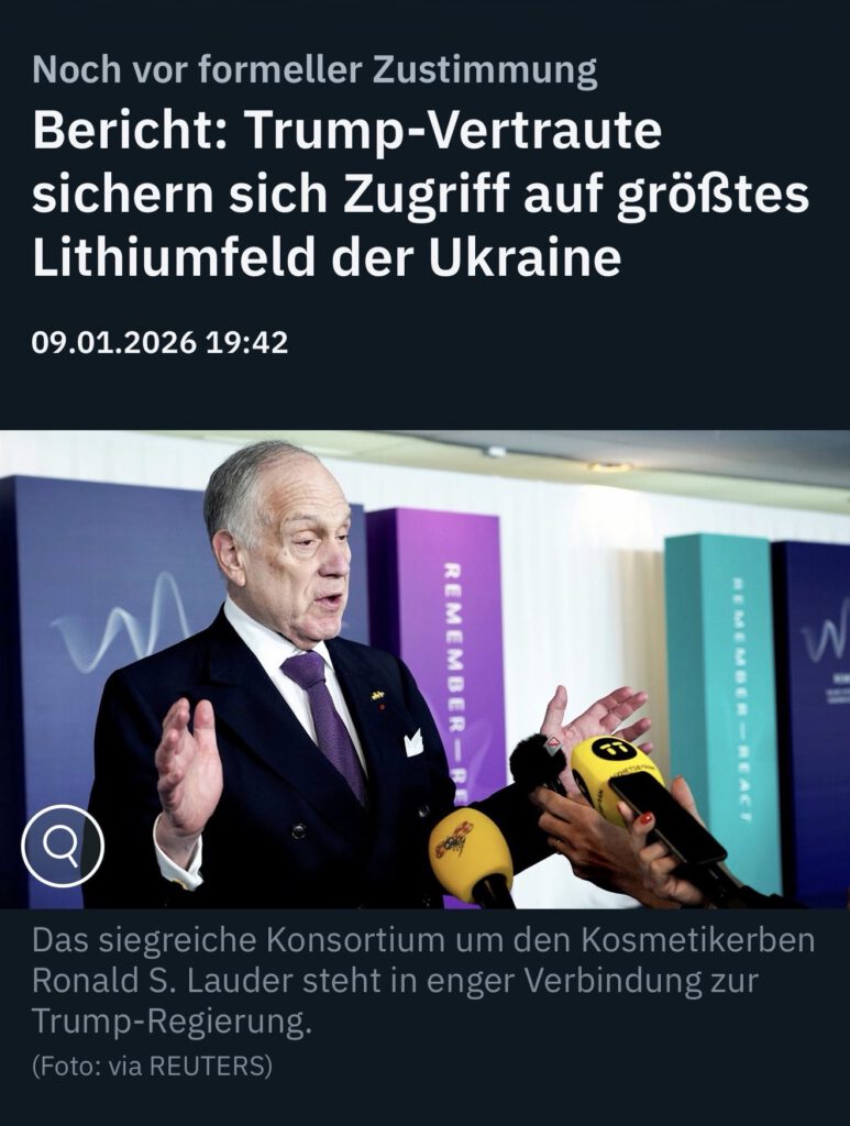 Ein n-tv-Bericht zeigt, dass Trump-nahe Investoren gemeinsam mit TechMet Zugang zum größten ukrainischen Lithiumfeld erhalten sollen.