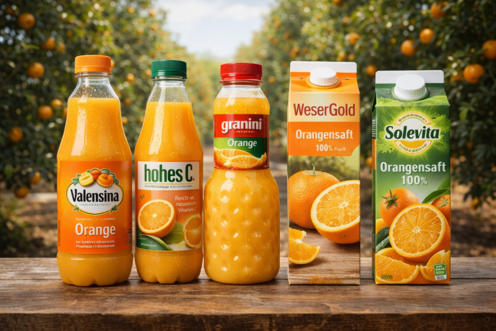Ein Blick auf die umsatzstärksten Orangensaftmarken in Deutschland macht die Folgen sichtbar. Marken wie Valensina, Hohes C und Granini beziehen den Großteil ihrer Orangen aus Brasilien, vor allem für Saft aus Konzentrat.