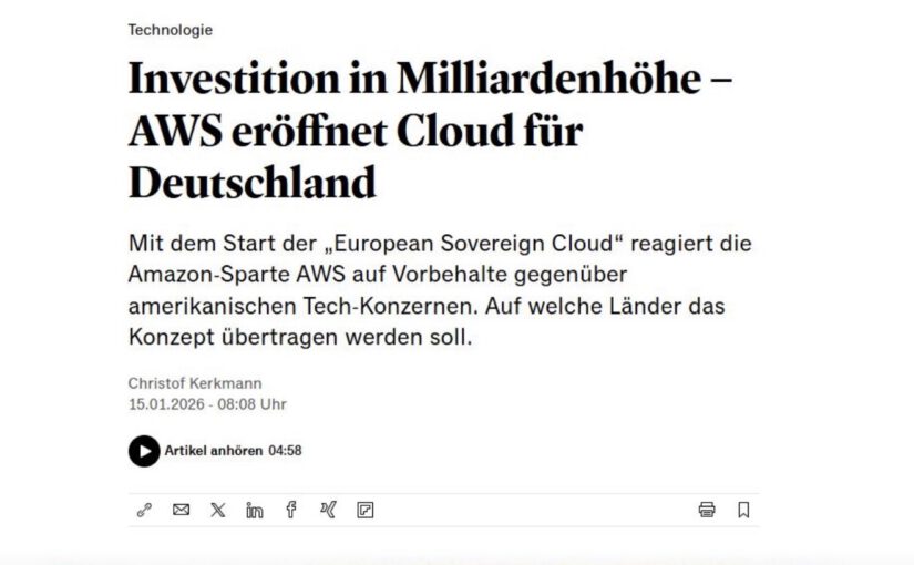 AWS feiert heute die Eröffnung seiner „souveränen“ europäischen Cloud-Region. Mit eigener Gesellschaft, Rechenzentren direkt in Deutschland, Personal nur aus der EU. Klingt erst einmal nach digitaler Souveränität. Ist es aber nicht.