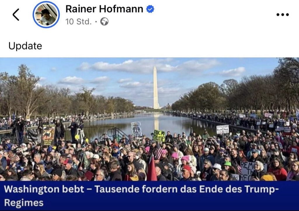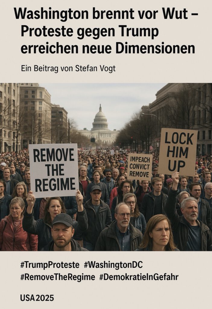 Die Rufe „Impeach, convict, remove“ und „Lock him up“ hallten über die Pennsylvania Avenue, sichtbar in Livestreams, begleitet von einem stetigen Zulauf neuer Gruppen, Schildern und einer Stimmung, die von Entschlossenheit und Wut getragen war. Die Demonstration war kein Ritual politischer Folklore – sie war Ausdruck einer Bevölkerung, die spürt, dass sich im Land etwas gefährlich verschiebt.